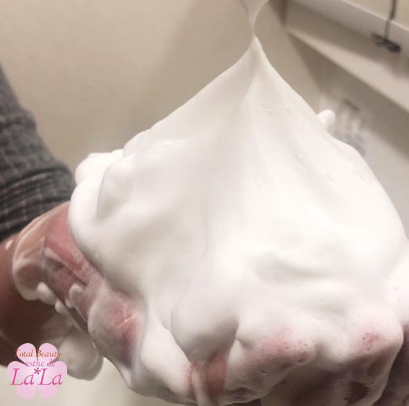 ネットを使ってしっかりと泡だてて手のひらがお顔にふれないように優しく洗う